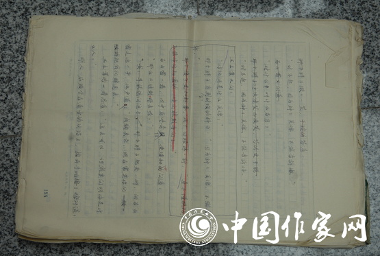 手稿中除了修改筆跡外,正文部分有兩個人的筆跡,其中一種筆跡豪放張揚、筆走龍蛇、行云流水,其主人應該是曲波;另外一種筆跡工整清秀、干凈得體,其主人或許為曲波愛人劉波(也有可能是編輯),劉波多年來跟隨曲波南征北戰,不管在多么艱苦的環境里,都陪在曲波身邊。新中國成立后,曲波開始利用業余時間進行文學創作,他十分低調,總是一個人默默地寫,外界很少有人知道他是在寫小說,但這一切有一個人是知情的,那就是劉波。在曲波進行創作的時候,劉波一個人默默承擔起諸多的家務,盡量給曲波創造一個良好的環境。不僅如此,她還是曲波小說的第一個閱讀者和謄抄者,她給小說提修改意見,幫助曲波改進。同時還負責把已完成的部分抄寫在新的稿紙上,曲波的代表作《林海雪原》就是在這樣的“分工合作”下完成的。因此,手稿中出現的另外一種字跡很可能是劉波的,若推測為實,這一份發黃的稿紙也是一段佳話的見證了。整幅手稿,兩種字跡大概各占了一半。