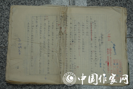 《不速之客》寫在16開的稿紙上,正文用深藍色鋼筆寫成,全文共計39個頁碼。在首頁的右上角蓋有人民文學雜志社的閱稿印章,顯示閱稿時間是1961年1月4日,這說明這一章節小說完稿的時間應該是在1961年以前,至于此時《山呼海嘯》的整部手稿是否完成,尚難斷定。小說正文上方顯示有兩個題目,一個是“來投之客”,另一個是“不速之客”,其中“來投之客”被幾道斜線劃掉了,是舍棄的意思。而“不速之客”則清晰地保留下來。在“不速之客”幾個字的旁邊還有一段紅色字體標記的備注:請考慮一下,哪個題目好些?“來投之客”似成語非成語,是否定性就用成語?這應是曲波在同編輯協商哪一個題目更好、更符合雜志社的要求,從小說內容來看,“不速之客”顯然更符合小說的情節,劉介山突然來投,算是“不速”之舉,但他的來投并不是真的歸順,只是敵人的又一個陰謀,所以,綜合來看,“不速之客”這個題目更切合內容,而最后也確實采用了這個題目。正標題的下方還有一個副標題:長篇《山呼海嘯》中的一節,這一副標題在1961年《人民文學》刊發時也予以保留,說明這份手稿是當時作者正在創作的長篇小說《山呼海嘯》中的一部分,是其中的一個獨立而完整的章節。但在1977年出版的《山呼海嘯》里,這一個章節并沒有被完整的保留下來,其情節被分散在另外的幾個章節里出現。