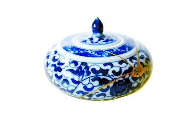 青花茶罐金繕。