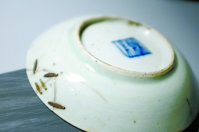 從這件清晚期豆青釉小碟上可以看到多次鋦修的痕跡,可見老輩人的惜物節儉之風。
