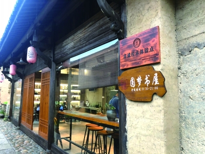 陣雨初霽的午后,記者來到大東壩鎮石倉村——江南客家的遷徙地,村前的石倉溪因大雨來襲而激流奔騰,沿著徐徐上傾的坡度往前走,卵石鑲嵌的村道被雨水沖刷得潔凈如洗,遇見村民他們都會友好地點頭致意,讓人有賓至如歸之感。走進裝修雅致的“鳴珂里”民宿,門上的兩塊牌子十分醒目——“非遺傳承體驗點”“圓夢書屋”。
