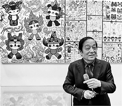 據悉,此次巡展展陳面積約1500平方米,共展出韓美林平面、青銅雕塑及鐵藝、陶瓷紫砂、木雕、影像新媒體等各類作品300余件。展覽以“激情”、“融和”和“奧運”為關鍵詞,按照主題劃分為“天”“地”“人”“藝”4個部分。其中,“天”主要展示韓美林從甲骨、青銅等古文物上搜集到的傳統文字與符號,通過現代藝術詮釋而形成的“天書”作品?!暗亍本劢箘游镄蜗?,體現對人與自然關系的思考?!叭恕闭沽辛隧n美林創作的人體畫與人體雕塑?!八嚒背尸F了韓美林的設計匠心。這次展覽還特別加入“你好首爾,我是韓美林!”和“奧林匹克”兩個特別項目,分別講述韓美林的藝術人生和他與奧運之間的不解之緣。
