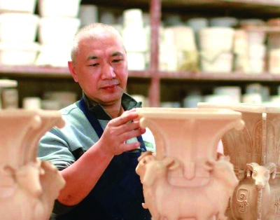 龍泉青瓷傳承人蔣同磊正在制作青瓷素坯