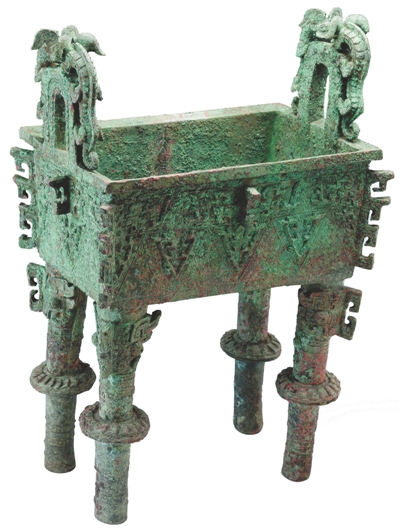柱足上裝飾扉棱,柱足中部裝飾圓盤,在商周青銅器中獨一無二。歷史價值與藝術價值極高,堪稱國之瑰寶。