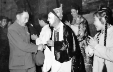 1964年4月,山西長治舉行晉東南專區自編現代戲觀摩演出大會。趙樹理出席活動,跟演員們親切交流。顧棣 攝