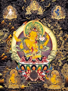 唐卡的發展與佛教息息相關,當佛教傳入西藏,藏族聚集區主要的生產生活方式是游牧生活,固定的寺廟無法滿足眾多遷徙不定的信徒需要。于是唐卡這種以卷軸畫形式出現的藝術,滿足了信徒的宗教需要。其繪制原料由礦物質、珍珠、珊瑚等自然界天然物質配制而成,純凈珍貴,又能保持畫作色澤的美感與持久性。