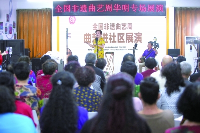 全國非遺曲藝周正在天津如火如荼地進行。6月10日,一支非遺曲藝小分隊走進天津市東麗區華明文化活動中心,為當地居民送上精彩的曲藝演出。