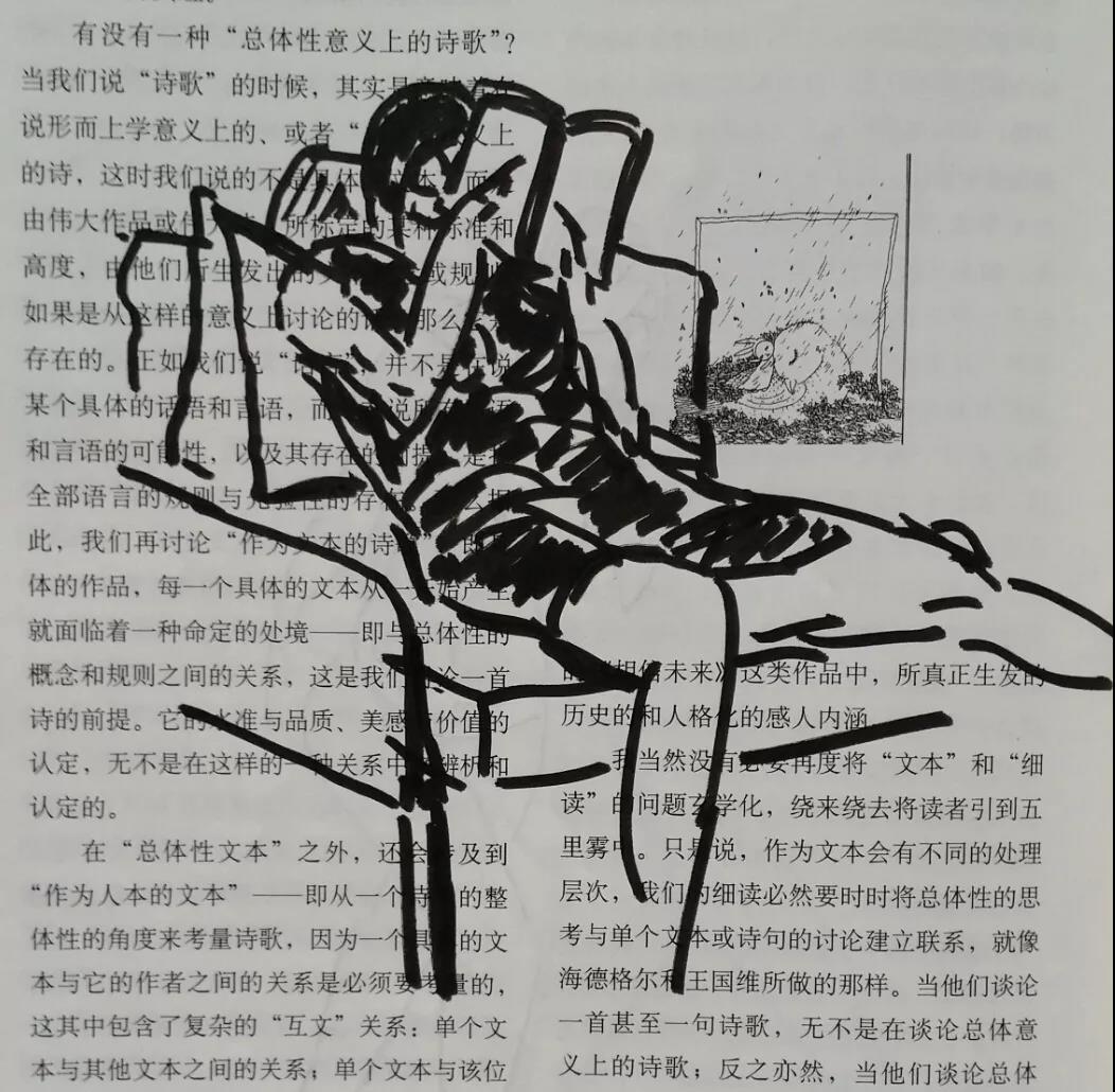 我時常在詩刊上隨手涂鴉。我不懂詩,也不寫新詩,所以基本上不怎么看詩刊。但詩刊印制得不錯,用紙也不錯,而且,內文留有大量的空白,正好適合畫兩筆,便常在上面畫。由于不是正規的畫本或畫紙,所以不那么拘謹,可以隨心所欲,信馬由韁。樂趣便也是別處畫畫所沒有的。所謂游野泳,或荒原馳馬,別有一番暢快的心致。