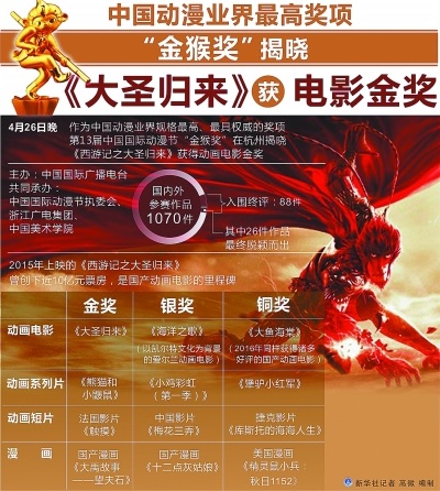 《大圣歸來》曾獲中國動漫業界最高獎項“金猴獎”電影金獎。新華社發