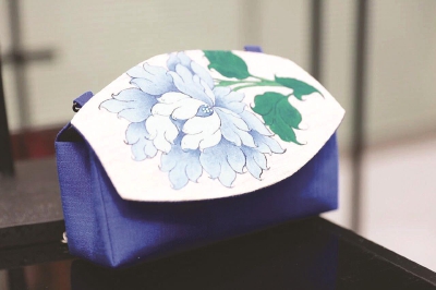 研修班結業成果,藏繡傳承人唐卡畫師奪基旺姆與跨界設計師李依蔓共同創作的“繪色牡丹”包系列。