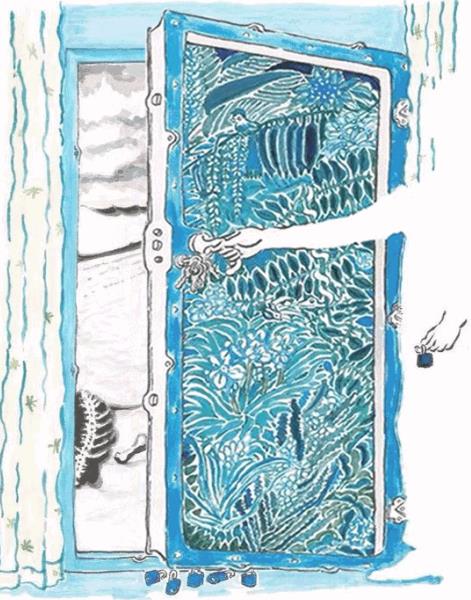 門、鎖、鑰匙、手。藍色豐茂植物的大門外,露出荒蕪的黑白風景。這就是金宇澄提出的意味嗎?“這是個讀者比作者更聰明的時代”。