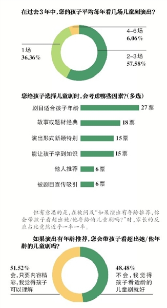 除了張雪,新京報記者也對33位家長做了個小調查,調查中發現有超82%的人在為孩子挑選兒童劇時最看重年齡匹配度。