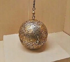 法門寺地宮出土的鎏金雙蜂團花紋鏤空銀香囊 本報記者 李韻攝/光明圖片