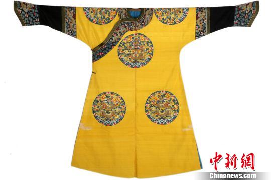 清黃緙絲五彩八團金龍袷袍,此袍為清朝皇后在宮中參加節慶活動穿著的吉服袍。沈陽故宮供圖