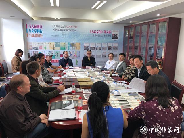 9月29日,參加魯迅文學院“2018國際寫作計劃”的外國作家來到中國作家出版集團,參加由魯迅文學院和人民文學雜志社共同主辦的“文學:中國聲音與世界表達”中外作家交流研討會?!度嗣裎膶W》雜志主編施戰軍主持研討會,《人民文學》雜志副主編徐坤,青年作家石一楓、陳楸帆等參加研討。