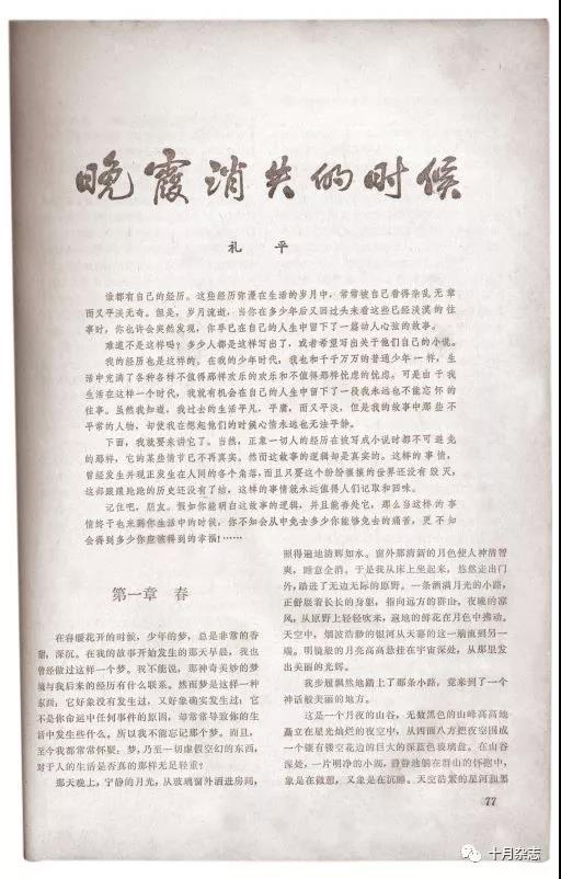 祝愿《十月》青春永駐,為中國當代文學推出更多更好的作品,培養更多更好的文學新人。