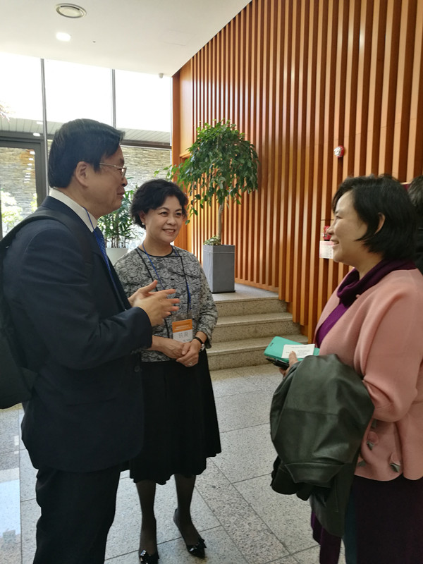 論壇休息時,鐵凝與韓國漢學家樸宰雨等交流