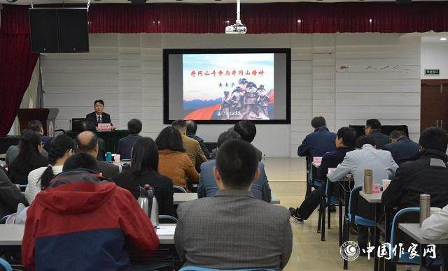 在“井岡山斗爭與井岡山精神”專題講座中,江西干部學院副院長黃書華從“兩年零四個月的井岡山斗爭”、“井岡山精神及內涵”、“現在的井岡山”三方面,講述井岡山革命斗爭的經過和井岡山精神的由來和發展。下午的“井岡山精神代代傳”訪談教學邀請曾志、甘祖昌等革命戰士的家屬,以及知青代表、當代井岡山英雄等到現場接受訪談,結合歷史影像,生動呈現井岡山精神的一代代傳承?!岸霹N花開”情景教學是江西干部學院一線教職員工自編自導自演的一部采茶劇,運用頗具地方特色的唱腔和舞蹈等形式,表現井岡山革命斗爭時期戰士劉仁堪一別親人赴長沙、二別親人上井岡、三別親人赴刑場的感人事跡。一天下來,學員們感觸頗深。多位作家在接受采訪時表達了自己內心受到的深刻觸動。