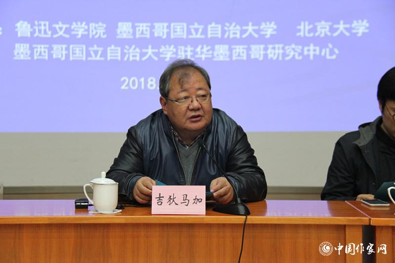 吉狄馬加代表中國作家協會和魯迅文學院向墨西哥作家、學者的到來表示歡迎。他說到,盡管在地理距離上比較遙遠,墨西哥在文化上、文學上是非常多元的一個國家,有著深厚的文化傳統和文化底蘊,有著燦爛的古代文化。彪炳史冊的太陽歷法就在墨西哥誕生,對人類文明史產生了重大的影響。在不同歷史階段,墨西哥都有很重要的思想家、詩人出現,比如胡安?魯爾福、奧克塔維奧?帕斯等。墨西哥的文學創作與思想,對世界文學來說是一個很重要的、可參照的坐標系。