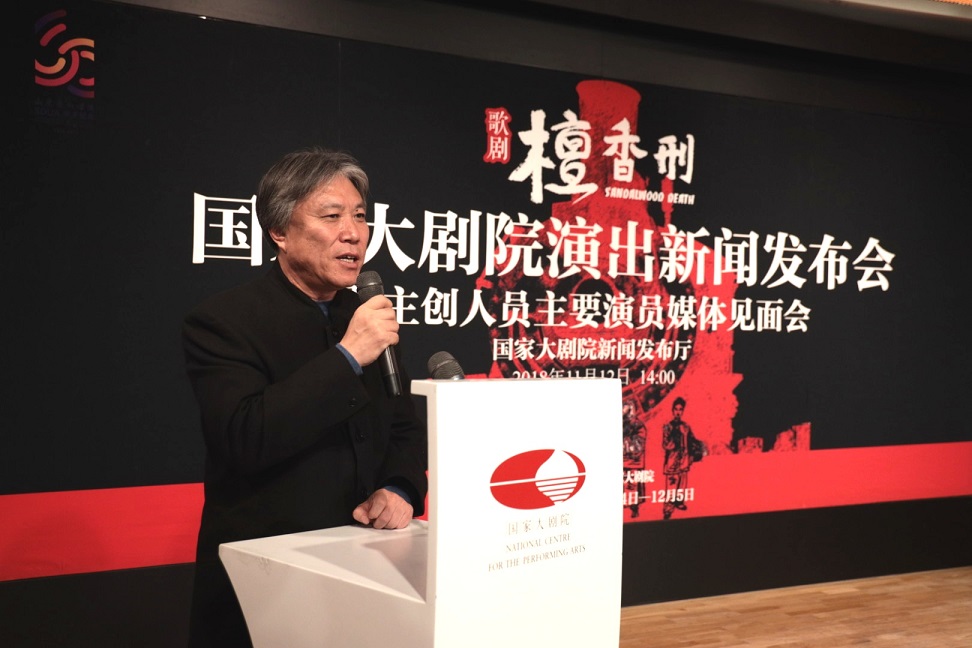 11月12日下午,“歌劇《檀香刑》國家大劇院演出新聞發布會暨主創人員主要演員媒體見面會”在國家大劇院新聞發布廳舉行。山東藝術學院黨委書記馬東驊,編劇莫言、導演陳蔚、指揮張國勇、作曲李云濤等主創人員,主演宋元明、韓蓬、王立夫等出席了發布會。