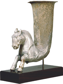 展覽現場不難發現很多牛的形象,其中閆志特別介紹了一件伊朗出土的牛形陶器,“這件陶器看起來很‘萌’ ,而且造型帶有強烈的現代感,但它的年代實際上是在公元前1200至800年左右,距今已經有3000年的歷史了。 ”展覽第二部分的展柜里擺放了大大小小不同造型的牛,都是在西亞、伊朗地區出土的,而在展覽第一部分的藏品中也能發現很多牛的形象,比如陶器上牛的紋飾、牛形酒壺等。閆志介紹,瘤牛在古代的西亞、印度、非洲等地區被視為家畜來飼養繁育,而以公牛崇拜為核心的宗教則發源于西亞,并向四周傳播?!芭T谌祟愒缙谖拿髦械淖饔镁薮?,對牛神的崇拜也遍及絲綢之路沿線地區。因此在展現中我們可以看到許多牛的形象,從希臘到兩河流域到伊朗甚至到印度北部。我們把這些牛擺在一起,讓大家看到不同時代、不同地域,人們對牛的崇拜是多么的相似,這也是我們在策展當中的一個思考。 ”