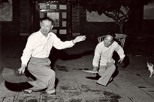 一天午后,聽到后院有人在唱戲,便好奇地從后窗探望,只見幾個年輕女士圍著一位慈眉善目的老先生,正在演唱著聽不懂的戲文。老先生端坐在一張藤椅上,目光炯炯地望著表演者,專注地聆聽著每個人的演唱,待一段戲唱完,他站起身,一邊糾正著演唱者的唱法,一邊還做著示范動作,一絲不茍極為認真,那是我第一次見到韓世昌。其實他那時已是年近60歲的老人了,但院里大人孩子都稱呼他韓大爺。韓大爺待人親切和藹,臉上總是笑瞇瞇的,但給我留下深刻印象的,是他走路時有著超乎常人的輕盈步伐,那步態仿佛在舞臺上走著臺步。他有四個子女,兩個小的是一對龍鳳胎景華、景林,比我大一歲,很快我們便成了經常串門玩耍的朋友。因為父輩都在北京文藝界,彼此常有機會見面,兩家人也時有走動。