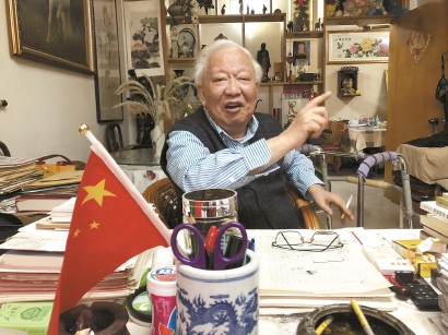 83歲的胡福明在自家客廳坐著,方桌就擺在玄關位置。任何來客一進門就能看見老爺子的桌面,從右到左擺著《馬克思恩格斯選集》《毛澤東選集》(第三卷)《習近平談治國理政》、最新一期的《新華文摘》《求是》雜志。第二排,依次是當天的《人民日報》,插著國旗和筆的筆筒、水杯、一罐風油精。最靠近胡福明身體的位置,擺著一沓綠格文稿紙。壓在文稿紙上的,是一副眼鏡、三只打火機、兩包香煙,和胡福明被香煙熏黃的左手。