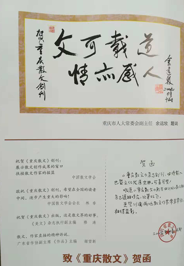 2017年,《重慶散文》還與涪陵區馬武鎮黨委政府聯合舉辦了“首屆‘古今.悅溪’杯”征文比賽,評選出一、二、三等獎和優秀獎共10名。