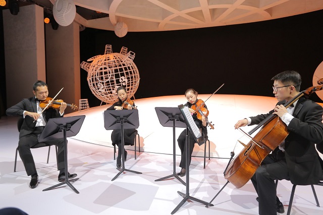 在大劇院公共空間,精心為觀眾準備了各種“邂逅”藝術的驚喜。北水下廊道,《唐璜》《羅密歐與朱麗葉》等劇中人,身著戲服,頻頻與觀眾互動。北玻璃幕墻下,整點奏響《節日序曲》《凱旋進行曲》報時。原創舞劇《天路》中的演員帶來的舞蹈快閃,更是將氣氛推向高潮。南玻璃幕墻下《國家大劇院》雜志的展示區別具特色。至今已發行126期的《國家大劇院》雜志用藝術故事和名家名團集萃陪伴公眾。不少觀眾在互動專區拍起了“創意紀念照”,成為《國家大劇院》雜志的“封面人物”。西咖啡廳中,藝術家在全天5個時段近距離為觀眾演奏《匈牙利舞曲》《小步舞曲》《梁?!贰恫试谱吩隆贰赌夏酁场贰顿愸R》等耳熟能詳的曲目。戲劇場入口,北方昆曲劇院的演員為大家演繹《牡丹亭》《貴妃醉酒》等昆曲與京劇名段。