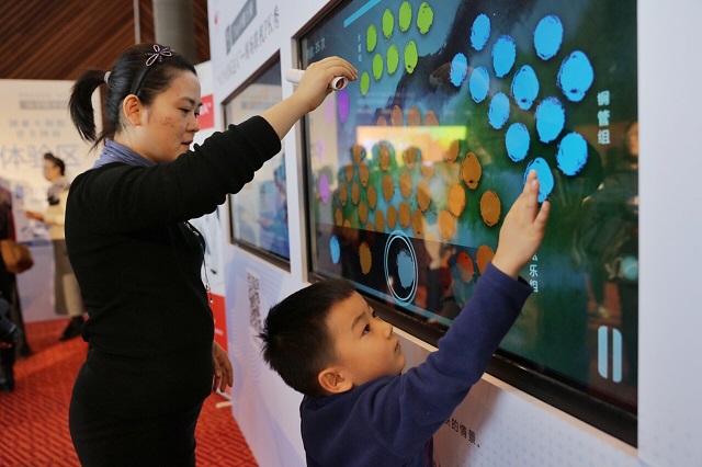 在音樂廳二層北側的國家大劇院官網體驗區,“舞臺夢?劇中人”活動迎來第二季,高清大屏結合人臉識別技術,微信掃碼現場選定鐘愛角色上傳照片,即可秒變大劇院“劇中人”,合成的照片不僅可以在朋友圈中分享,還能直接上傳現場大屏合影留念。而在“NCPA音樂達人”互動游戲區,觀眾可以現場聯機對戰,挑戰對交響樂的節奏把控。