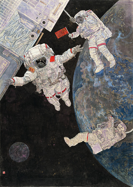 毛珠明《中國夢——飛天》,2016,151×214cm,中國畫,紙本,國家藝術基金青年藝術創作人才(美術類)滾動資助作品