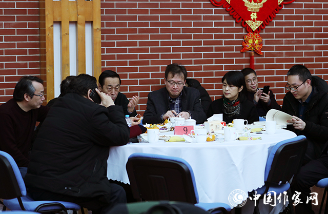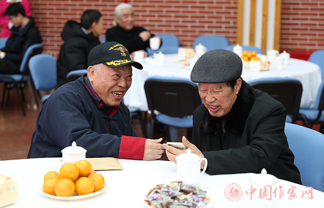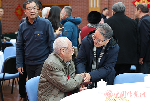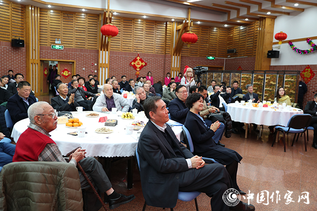 在喜慶歡快的樂曲聲中,與會作家們親切握手,熱情交談,合影留念,互致新春祝福,回顧過去一年文學事業繁榮發展取得的成就,展望新一年中國文學的美好未來。部分中國作協會員、青年干部職工和藝術家們表演了精彩的文藝節目。
