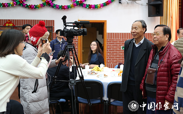 中國現代文學館多功能廳張燈結彩,暖意融融,紅色背景板上“謳歌新時代 攀登新高峰”的大字分外醒目。一陣陣歡聲笑語,一聲聲祝福問候,傳遞著節日的喜慶氣氛。
