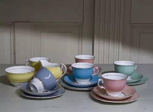 薩先生離開咖啡館后去的下午茶會五點一刻開始(阿婆在她的作品中常強調下午茶應在5點左右)。這是莊園里的花園茶會,安排在草坪上進行。場面不缺山毛櫸、黎巴嫩雪松、白色油漆雕花桌。下午茶的典型配置黃瓜三明治按時出現,此外的肉醬三明治也是規矩中常有的。茶桌上的茶具當是哈利奎因五彩。各色茶杯搭著俊男美女,一片祥和的樣子。但到阿婆筆下,“色盲”兩字即可攪出一大團疑云。吉列特夫人為爭產利用其夫家族遺傳的色盲,借調換色盲者難以辨識顏色的茶杯之機欲害繼子,被薩先生及時識破。
