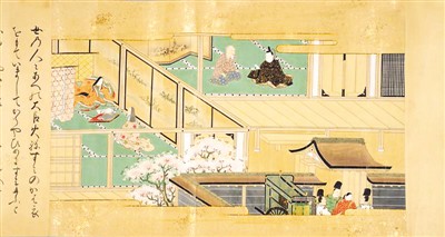 唐物,主要指中國唐代的物品,《角川古語大詞典》定義為包括唐錦、唐織物、沉香、麝香、茶道、中國畫等物品的總稱,在室町時代被當做奢侈品,后成為舶來品的統稱,還出現了專門買賣這些物品的“唐物屋”?!对词衔镎Z》《枕草子》中的主人公常以占有、消費和贈予唐物來標榜自己的身份和地位。