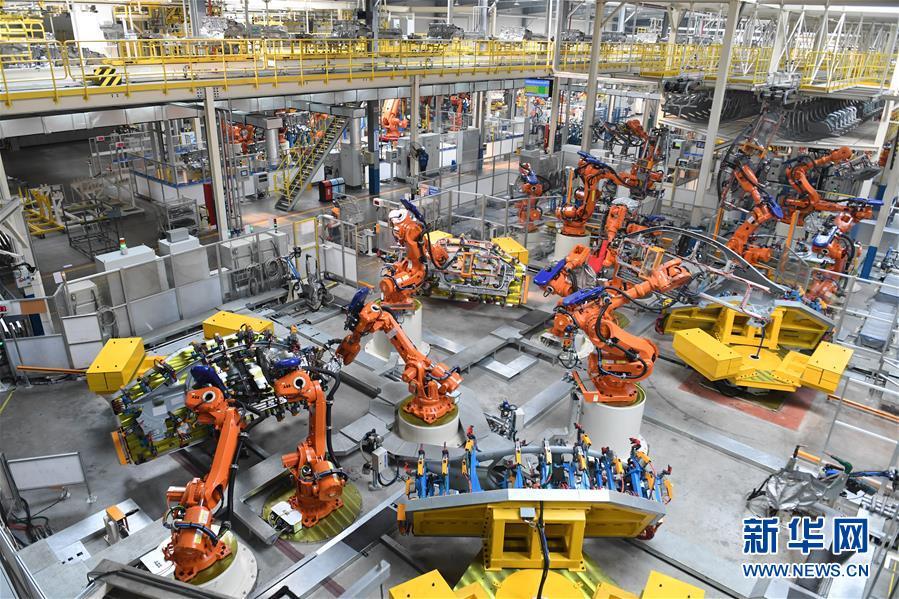焊接機器人在浙江臨海的吉利汽車生產車間工作(2018年3月27日攝)。新華社記者 殷博古 攝