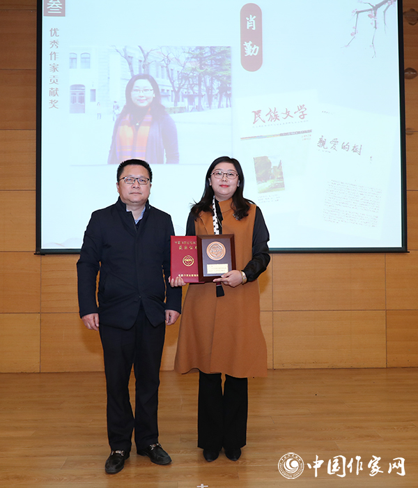 李少君為優秀作家貢獻獎獲得者肖勤頒獎