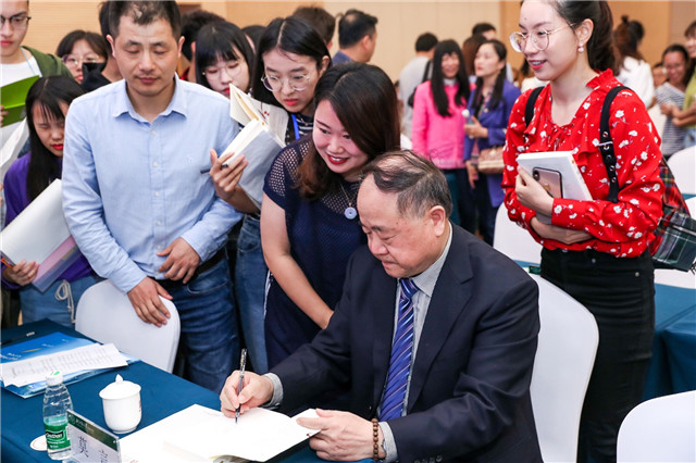 “余華他是我的好朋友、同學、同行,也是大家都非常尊敬的非常喜歡的一個作家”,莫言眼中的余華是一位非常嚴肅、認真的作家,也是一位作品數量不多但影響力極大的作家,他的《活著》至今發行2000萬冊,長據圖書暢銷排行榜首位。莫言回憶起二人同窗時期的寫作生活,一幕幕仿佛就在昨天,“我和余華睡的距離只隔了一米,他在門口替我站崗我在里面創作,他寫《在細雨中呼喊》時,我在寫《酒國》,我們彼此可以聽到對方的呼吸聲,也可以聽到對方的筆尖在紙上摩擦的聲音?!蹦詫τ嗳A的文學創作充滿期待,“期望著他在教學的同時,再寫出像《活著》一樣永遠‘活著’的小說”。