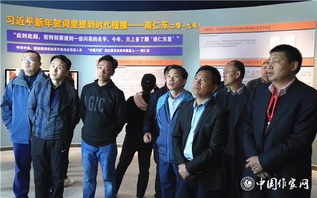 “人類之所以脫穎而出,從低等的生命演化成現代這樣,出現了文明,就是有一種對未知探索的精神?!倍嗄陙?,總設計師南仁東為龐大的“中國天眼”項目付出了巨大的努力,但他本人卻在望遠鏡落成啟用不久后因病去世。2018年12月18日,黨中央、國務院授予南仁東同志改革先鋒稱號,頒授改革先鋒獎章。采訪團走進“時代楷?!煅劬藿衬先蕱|事跡展”,學習南仁東的先進事跡,對他致以穿越星空的哀思?!俺掷m二十多年的勘測設計,他堅毅執著,嚴謹求實,最后為科學、為國家奉獻了自己的生命,這是何等的愛國精神!”關仁山談到,一個國家,一個民族,不能沒有精神,不能沒有靈魂,不能沒有英雄。南仁東就是我們身邊的英雄,新時代的楷模。采訪團成員認為,在新時代作家要勇于書寫英雄,走進生產生活的現場,發掘日常生活中的英雄故事,捕捉創作靈感,深刻反映時代巨變,用自己手里的筆為新時代畫像。