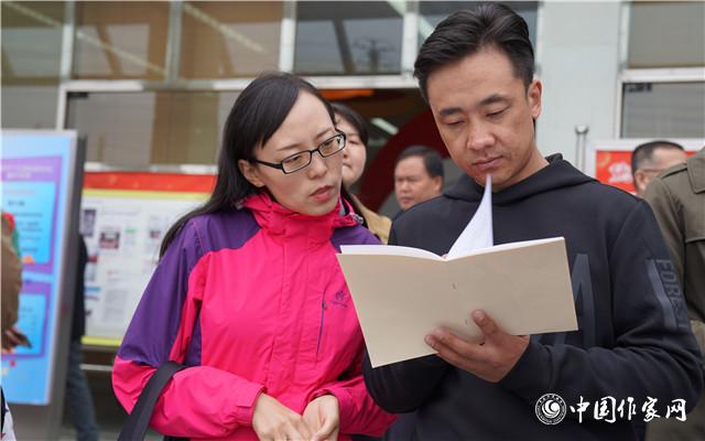 采訪團成員孫頻、索南才讓認真研讀相關資料