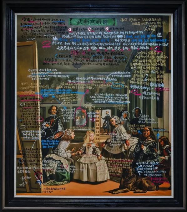 在《宮娥之卵》的展覽中,武寧亞以西班牙畫家委拉斯凱茲的名畫《宮娥》為靈感來源。對藝術史的興趣(敬意與沖動)、對語境和問題的大容量思考與呈現、強烈的“物料意志”(材料控),這三點構成了武寧亞此次“宮娥之卵”的核心特點。他以體量巨大的裝置方式“介入”《宮娥》的能指鏈,致敬300多年前的委拉斯凱茲,解密隱藏了幾百年的藝術謎題,并借此以中國當代藝術家的身份參與世界性的藝術對話。