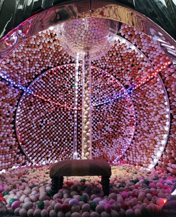 《宮巢》 不銹鋼、人工水晶、機械裝置、手工蛋 560 x 420 x 380cm 2018