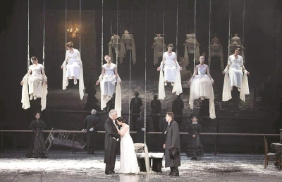 從《葉甫蓋尼·奧涅金》到《三姐妹》再到《欽差大臣》,圖米納斯非常善于把文學經典搬上戲劇舞臺。他曾在莫斯科戲劇藝術學院學習,藝術基因與俄羅斯戲劇精神一脈相承,同時,受到俄羅斯深厚文學底蘊的深刻影響,他擅長挖掘潛伏在文字之下的深刻內涵,對劇作進行細節的詩意處理,激發觀眾的情感。對于今天的戲劇創作來說,他曾說:“我和我的演員要試圖沉入湖底,去挖掘潛藏在文字之下的東西?!?/p>