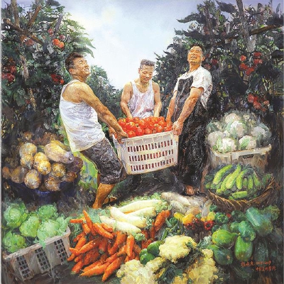 趙曉東油畫作品《幸福的菜籃子》(局部)。(均資料照片)