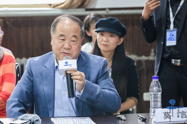 最后總結時,莫言說,一個作家所有的感受,實際上都來自于他的寫作。一個作家如果在某個方面跌倒了,爬起來的唯一辦法就是用筆寫作。莫言還是那個講故事的人。