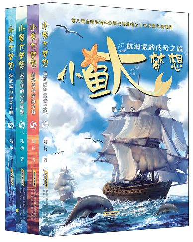 著名科普科幻作家陸楊的小說“小魚大夢想”系列里,完全滿足了我們能夠變成一條聰明智慧的小魚,與一群志同道合的小伙伴,一起到深廣的大海里冒險的夢想。這部作品的主人翁,是六個性格不一、各具能力的生物。其中為首的就是長江江豚江曉迪,它是“海洋冒險團”的團長,成員包括粉紅色瓶鼻小海豚波西米、章魚比爾蓋亞、劍魚卡羅、電鰻曼特斯、旗魚菲爾德。它們一起潛入世界上最深的地方馬里亞納海溝探險;它們一起重返16世紀,與麥哲倫見證新航路的開辟,與達爾文一起探明生物進化的真相;它們一起來到垃圾島,尋找神秘的大寶藏;它們穿梭時空,調查史前文明如何湮滅……