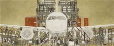 中國制造走向世界——C919大飛機(中國畫) 范春曉