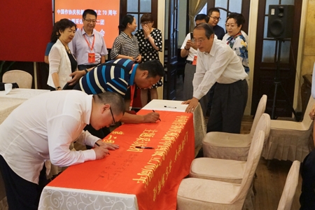 上海段的行程以16日早在上海作協舉行的“文學座談會”和贈書儀式收尾。吉狄馬加代表中國作協向上海作協捐贈圖書,部分采訪團作家在自己的作品上簽名留念。