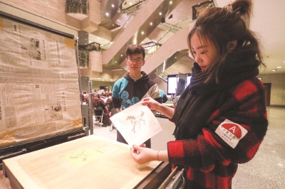 “丹青寶筏”2019上博奇妙夜活動上,觀眾在展示自己制作的書畫復制品。本報記者葉辰亮攝