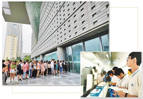 左圖 在首都博物館門前排隊等待入館的參觀者。 下圖 帶著博物館任務單來參觀的學生。廉 丹攝